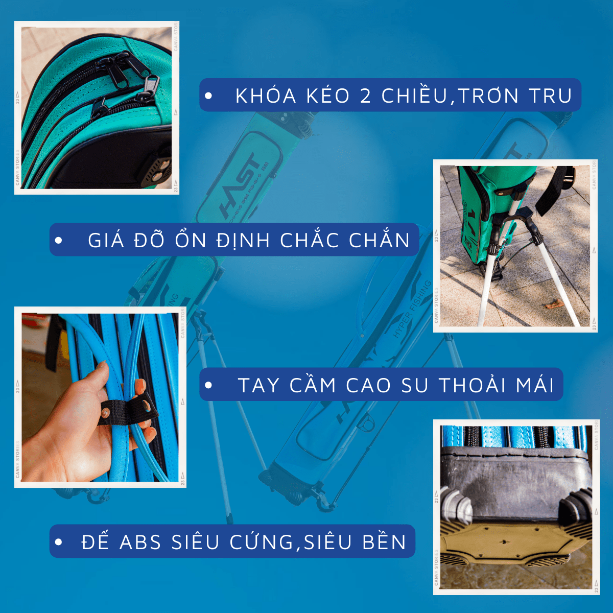 - Chất liệu 3 lớp vải bền bỉ chống mài mòn không thấm nước tăng độ bền của bao cần, - Thiết kế đẹp mắt, sang trọng. Trọng lượng nhẹ dễ dàng mang theo.