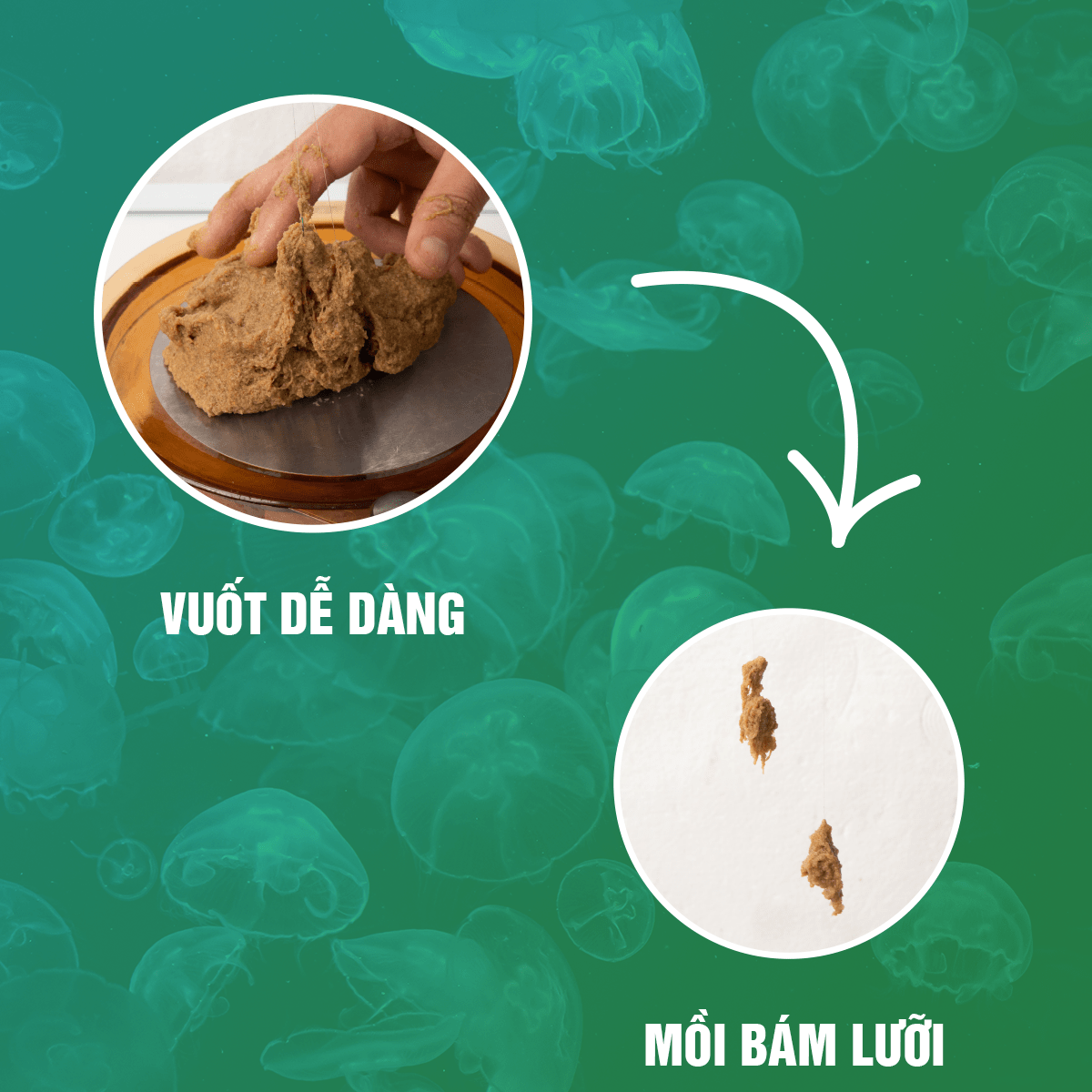 Sản phẩm được sản xuất hoàn toàn từ các nguyên liệu thiên nhiên, sử dụng trong câu tự nhiên câu cá hồ dịch vụ và trong thi đấu.
