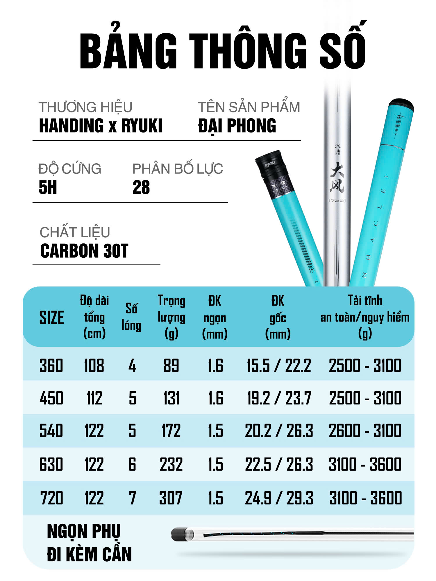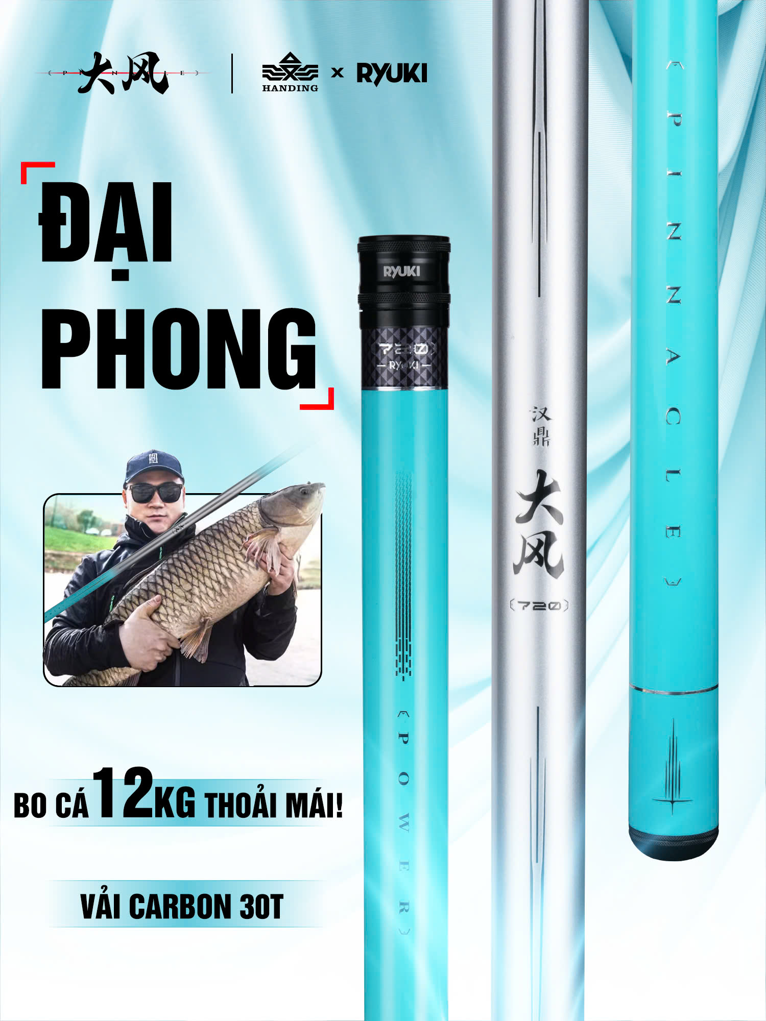 Dòng cần câu tay cao cấp mới được ra mắt vào năm 2025 của HANDING. Cần được thiết kế với nhiều lớp carbon 30T đan chéo, cho trọng lượng nhẹ mà vẫn giữ được độ chịu tải cao.
