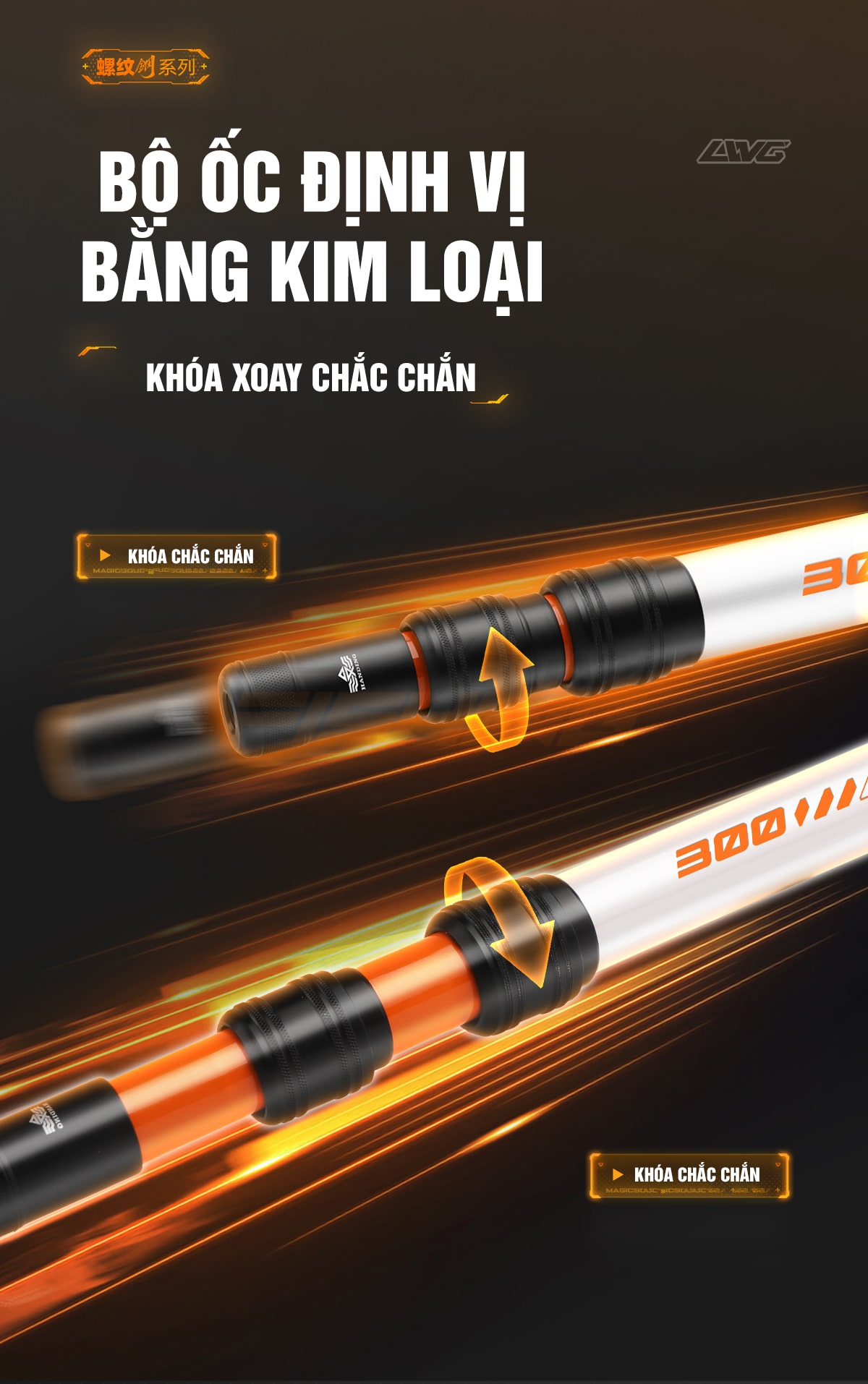 Bộ ốc định vị bằng kim loại, khóa xoay có thể điều chỉnh độ dài tùy ý.
