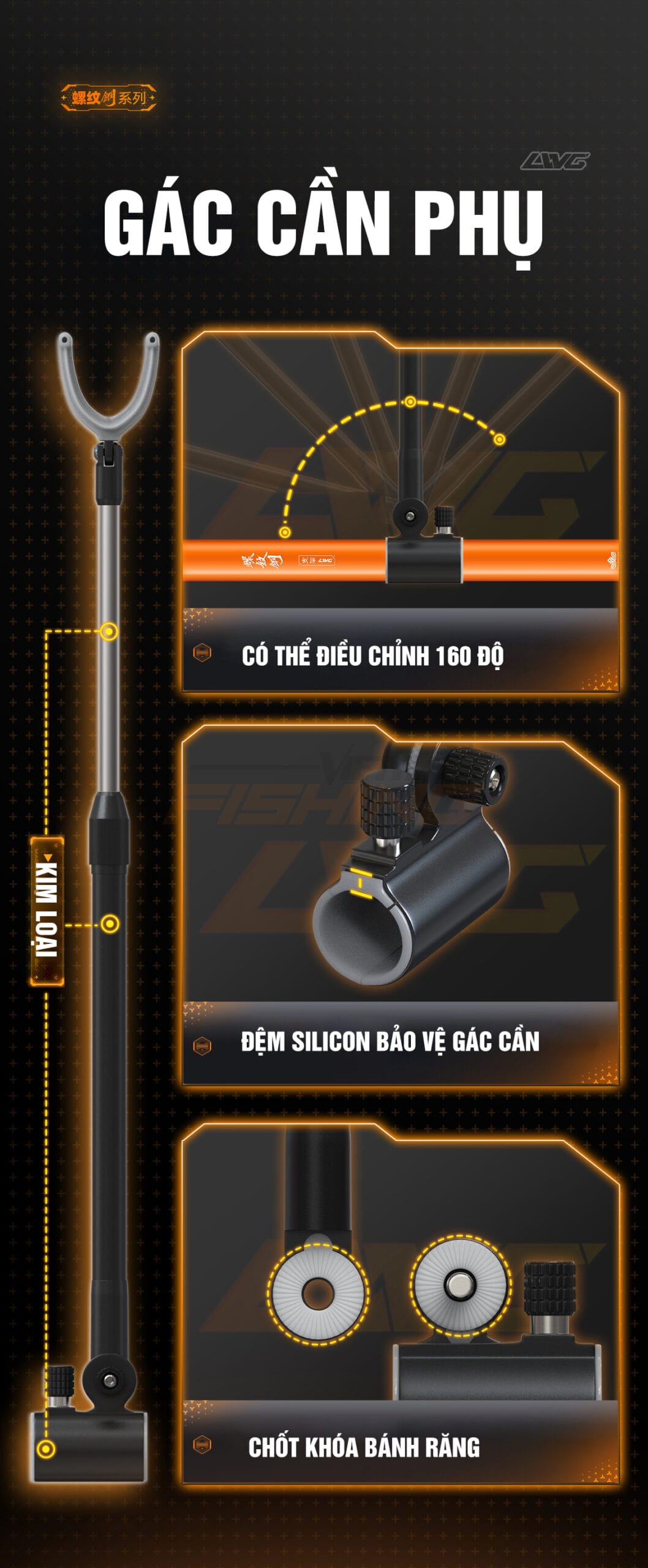 Gác cần Handing LW là dòng sản phẩm của thương hiệu Handing mới ra mắt vào cuối năm 2022. Gác cần có trọng lượng nhẹ, chịu tải cao, tông màu trẻ trung, sản phẩm dành cho các cần thủ chuyên nghiệp với các thiết kế tỉ mỉ và chắc chắn.