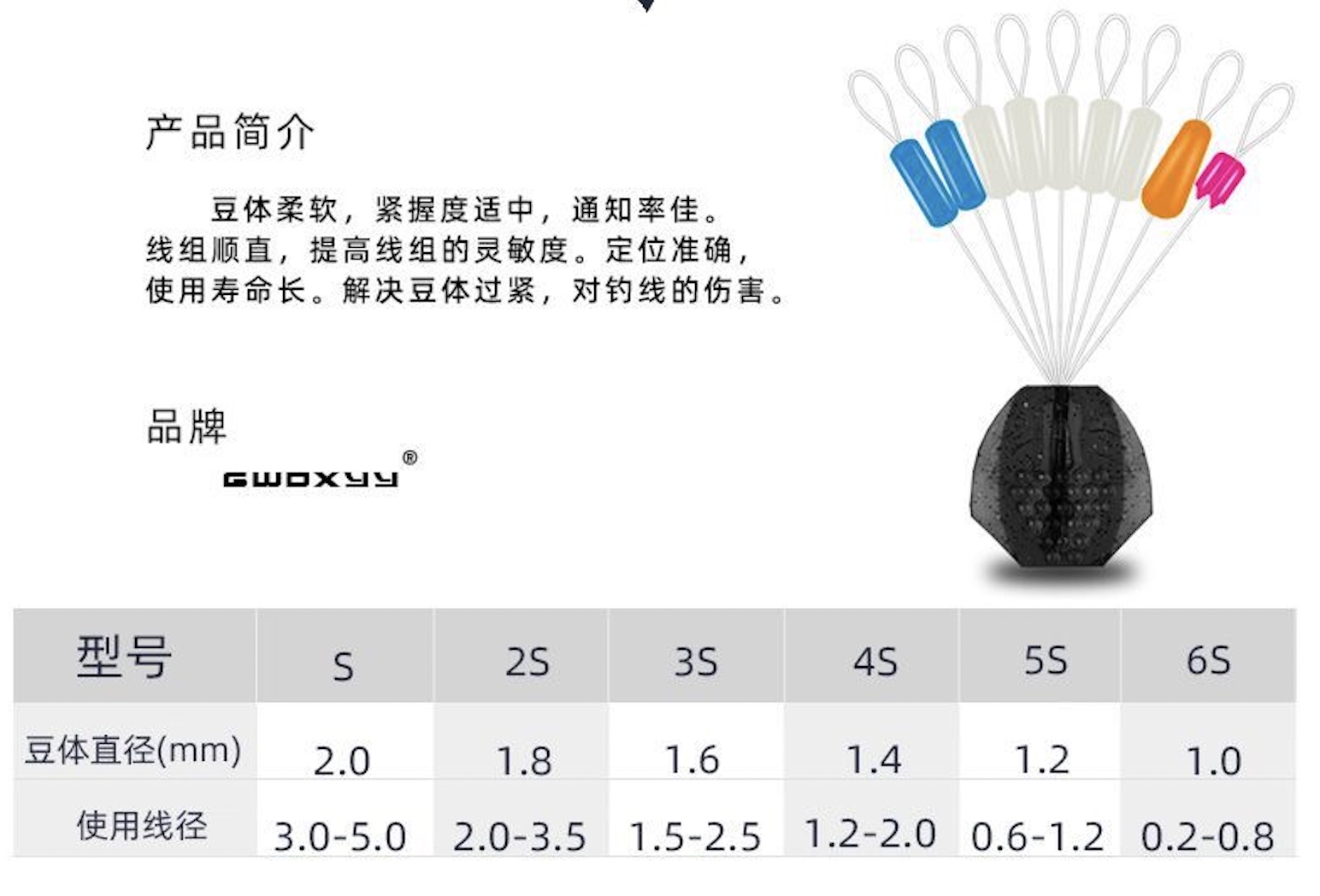 Thiết kế đặc biệt dành cho câu đài, hạt chặn dày, độ bền cao, chống rách tốt hơn, khóa ren tự động, trượt mà không làm tổn hại dây, càng chặt hơn trong nước.