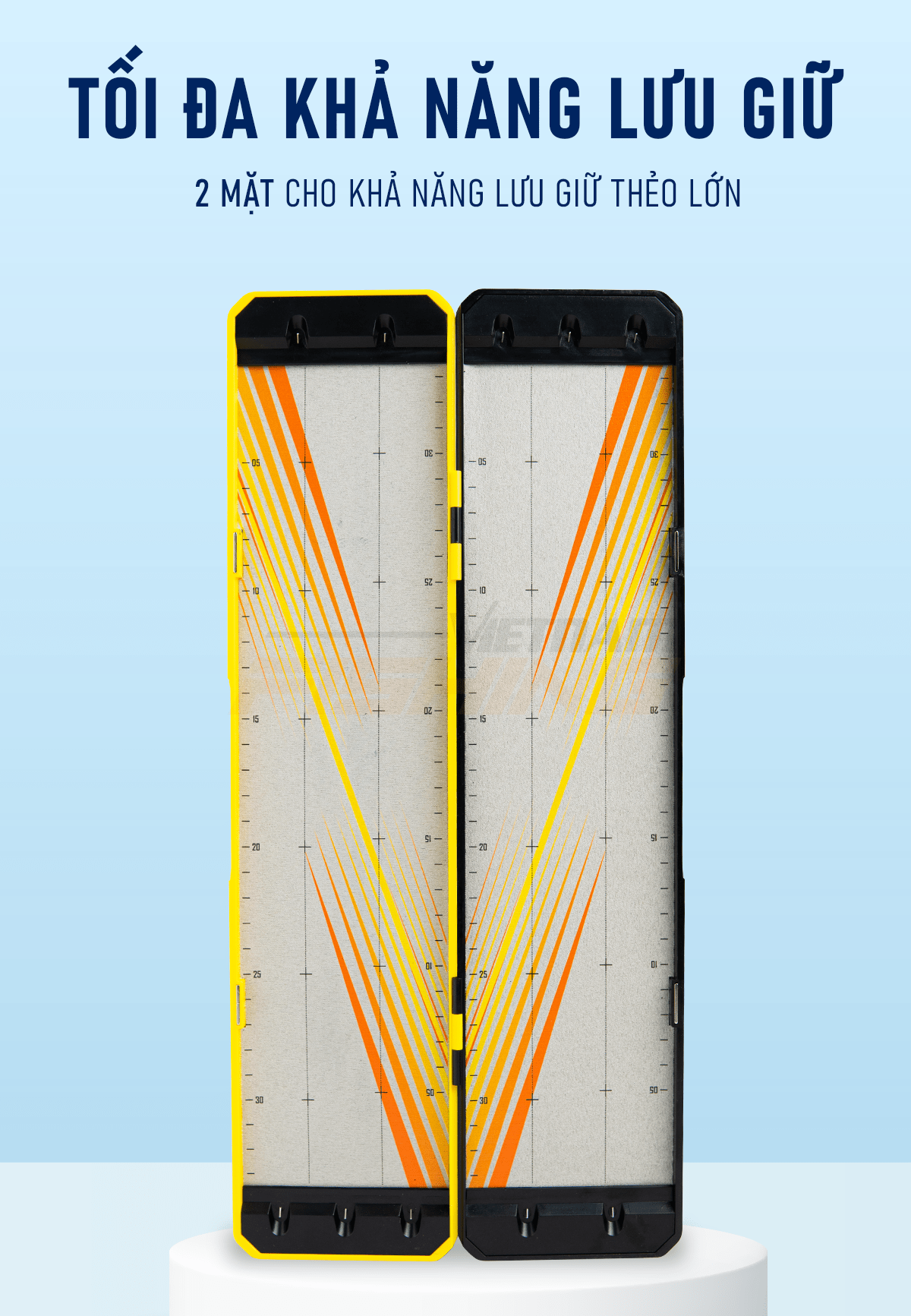 Bề mặt trên trong lót nỉ, có thước đo giúp đo luôn thẻo mà không cần phải sử dụng đến thước đo. Kim móc thẻo được làm bằng vật liệu không gỉ, thiết kế ẩn vào trong bề mặt trơn giúp hạn chế tổn thương dây.