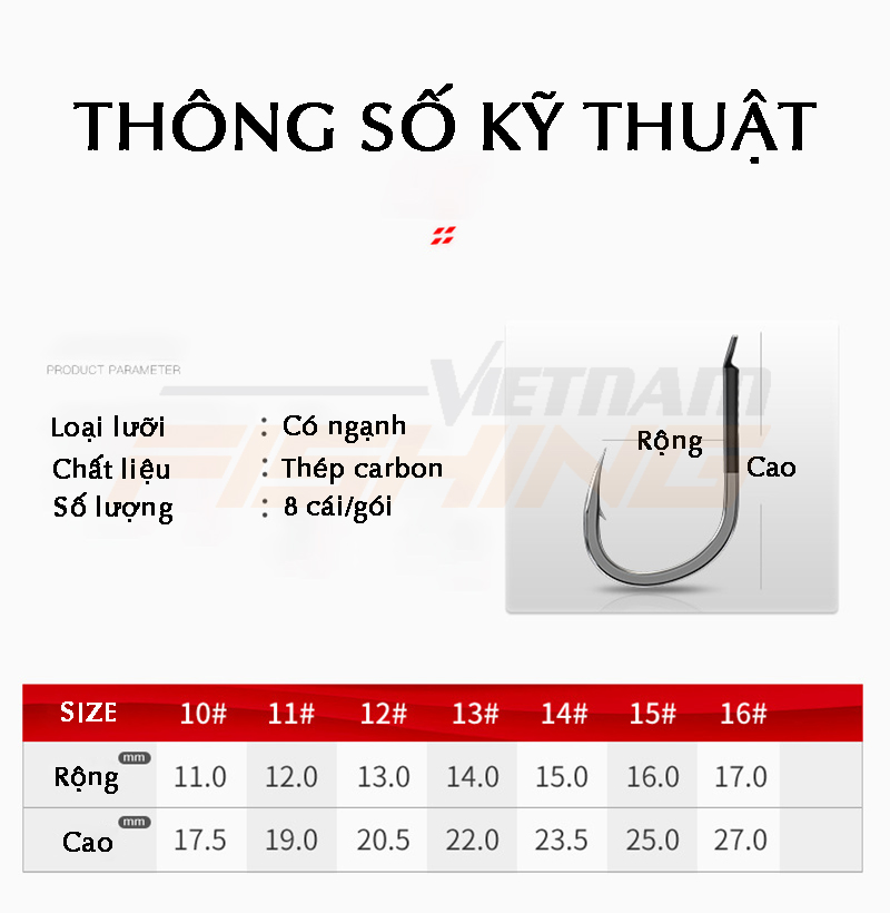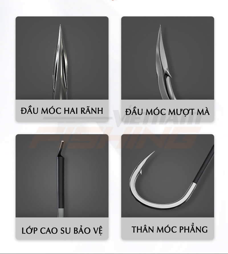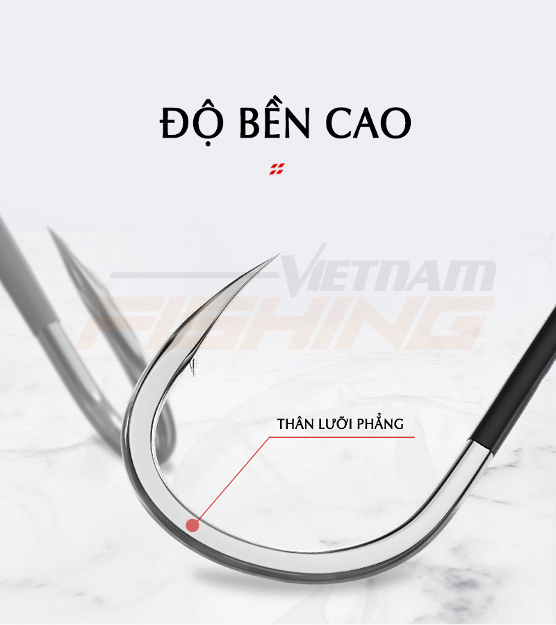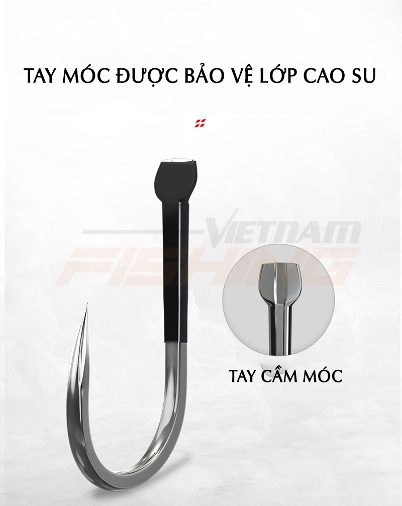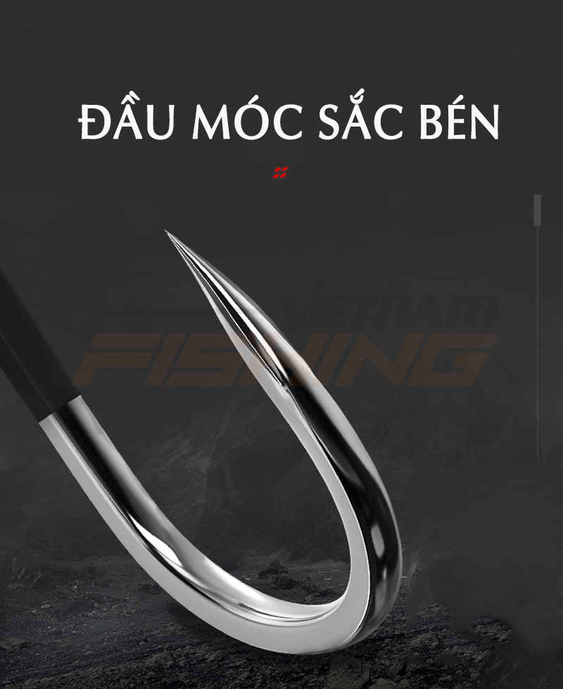 Lưỡi câu săn hàng Handing được làm từ vật liệu thép carbon gia cường, giúp lưỡi cứng cáp, chịu tải được những loại cá cỡ lớn như trắm đen, cá tầm. Mũi lưỡi sắn bén, dễ dàng đâm xuyên qua miệng cá, ngạnh lưỡi chắc chắn, giữ cá tốt, chống tuột cá. Chuôi lưỡi được bọc cao su, chống tuột lưỡi