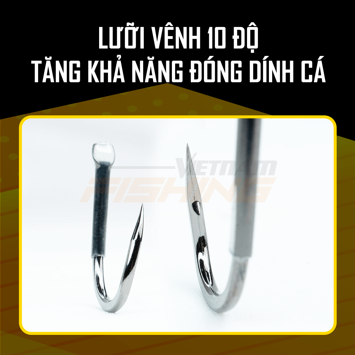 Mũi lưới vát nhọn, chếch sang một bên, độ xuyên thấu cao, dễ dàng kiểm soát cá. Vật liệu thép carbon siêu cứng Chuyên dùng cho các dòng cá lớn, cá tự nhiên, cá thịt: chép, trôi, trắm... Vật liệu thép carbon siêu cứng.