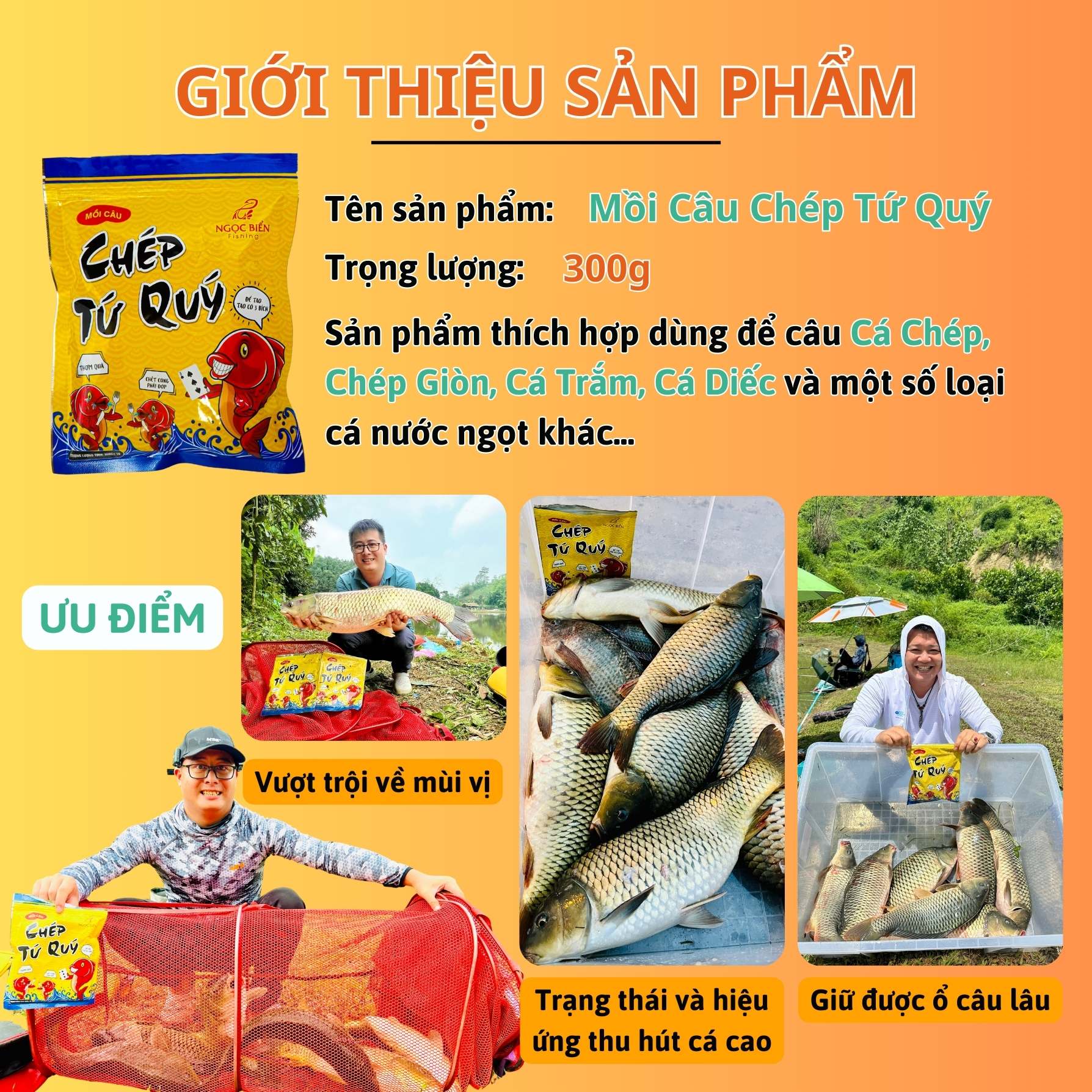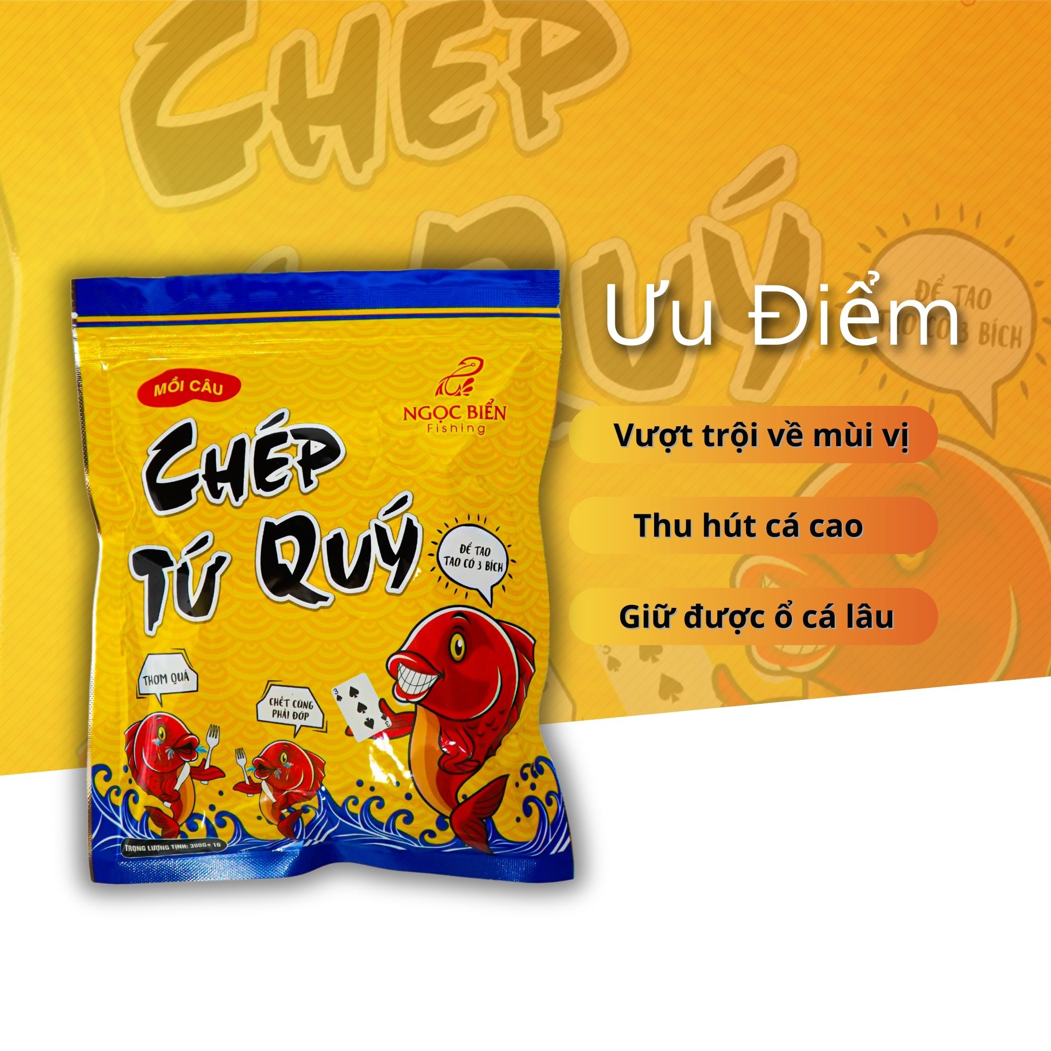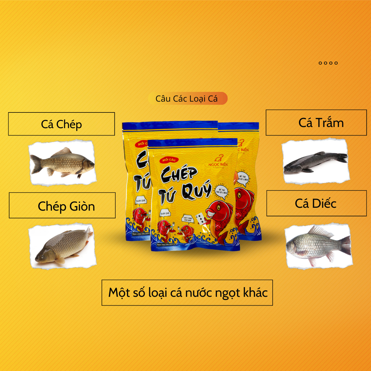 Giới thiệu: Sản phẩm thích hợp dùng để câu Cá Chép, Chép Giòn, Cá Trắm, Cá Diếc và một số loại cá nước ngọt khác... Với ưu điểm vượt trội về mùi vị, trạng thái và hiệu ứng thu hút cá cao, giúp giữ được ổ câu lâu.