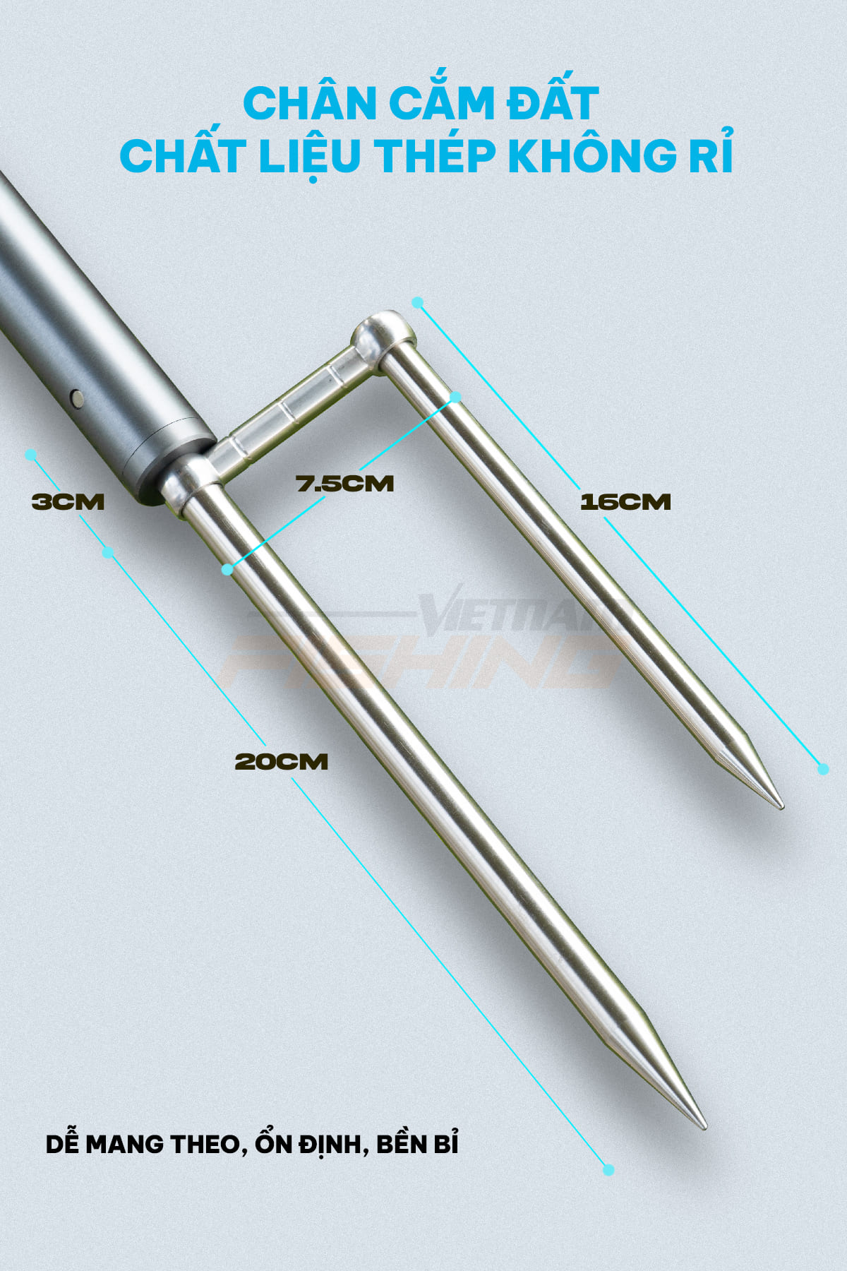 Đi kèm là chân cắm đất inox cao cấp tháo nắp dễ dàng giúp neo chống gió, chống đổ khi trời có gió và mưa.