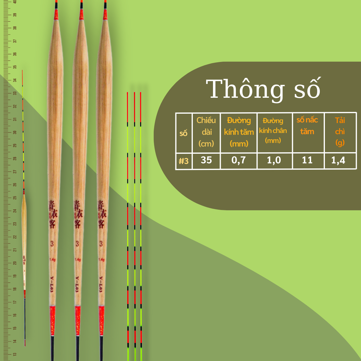 Sản phẩm Phao Cỏ Thanh Y Khách Y-L03 là phao chuyên dụng dành cho việc câu cá rô phi và câu cá diếc.