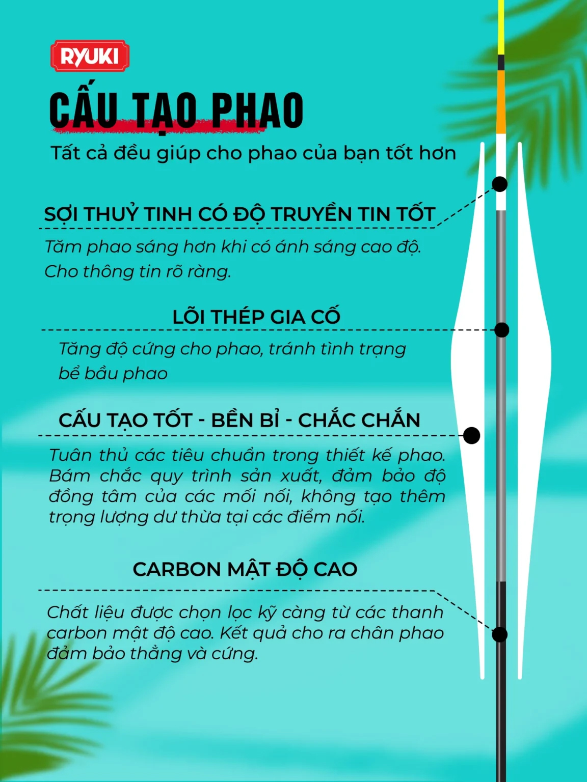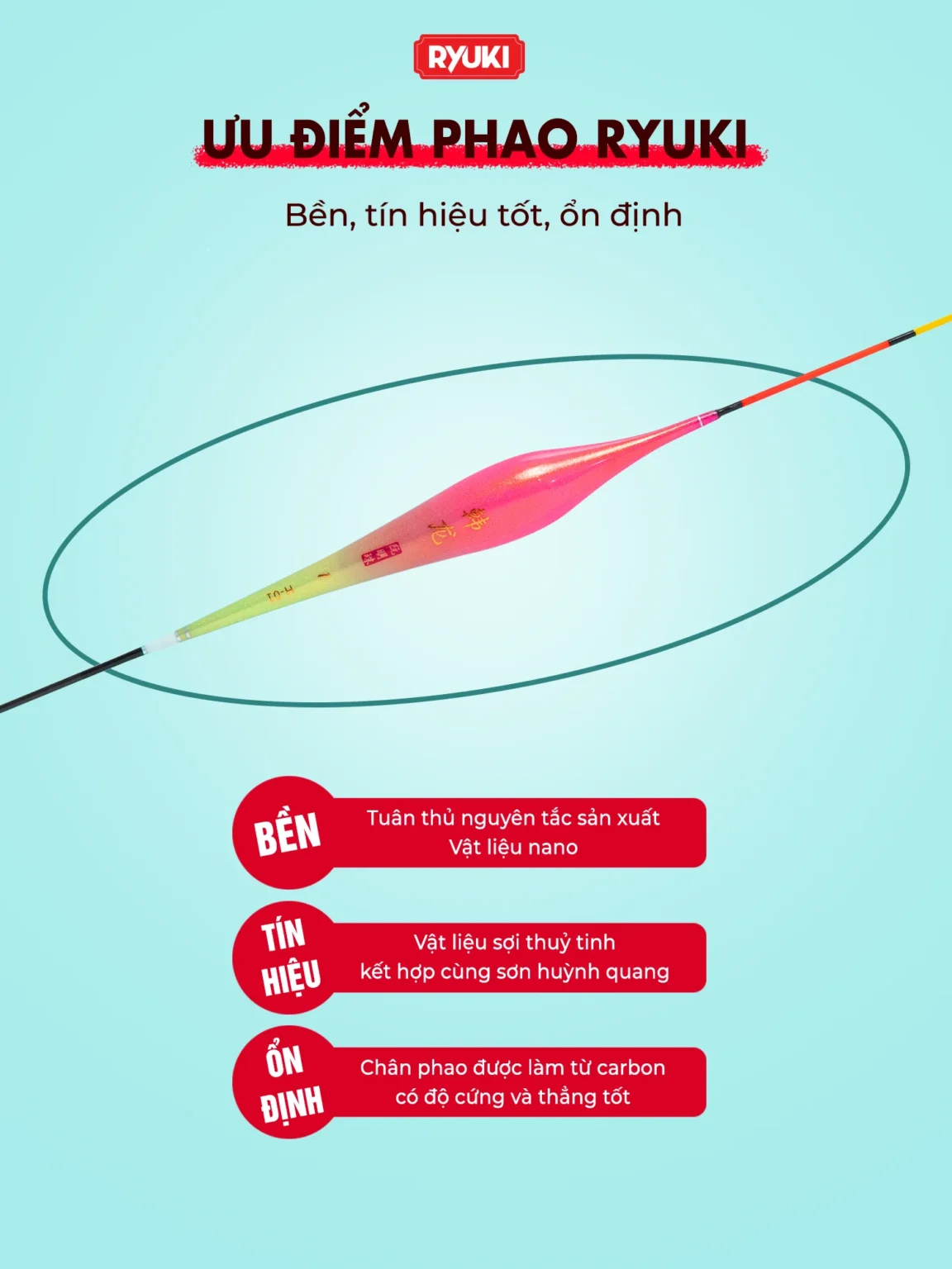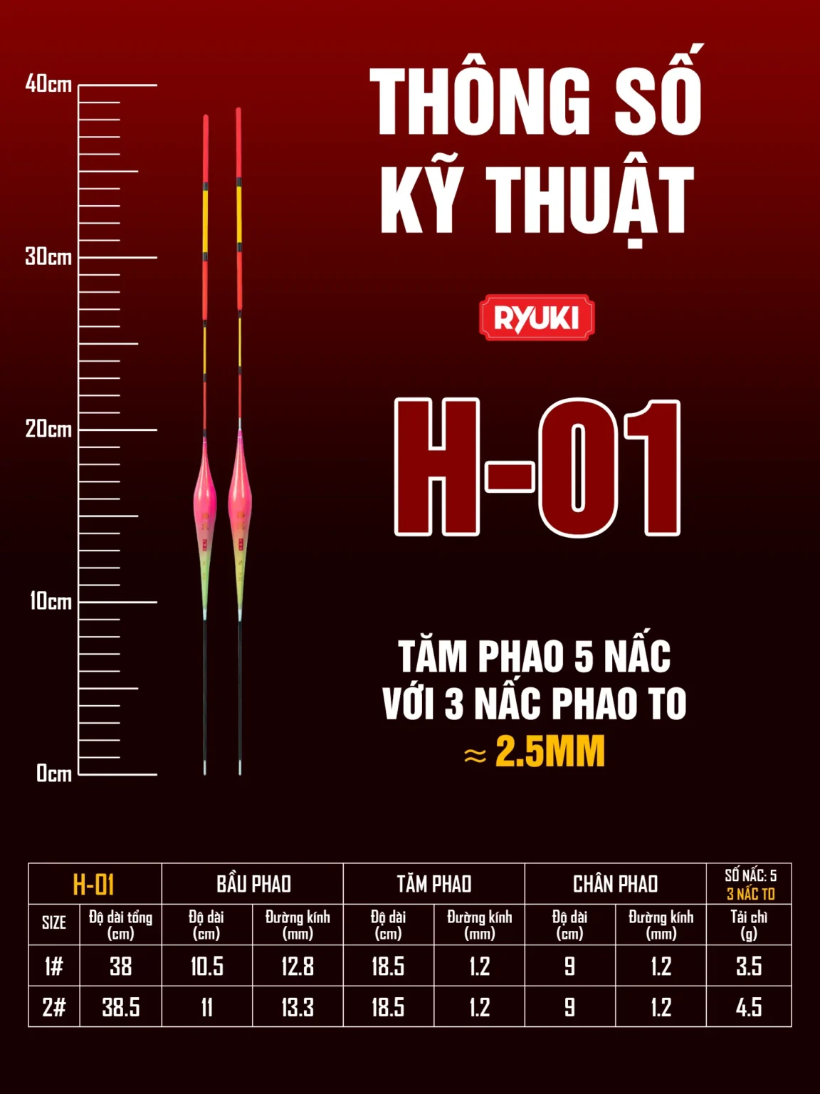 Phao Nano Câu Trắm,chép cao cấp RYUKI H-01 là sản phẩm chất lượng cao dành cho các tay câu chuyên nghiệp và nghiệp dư.
