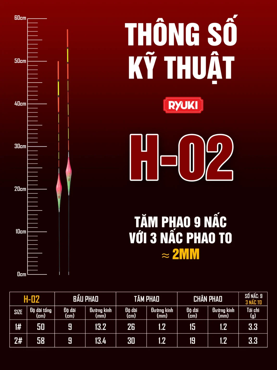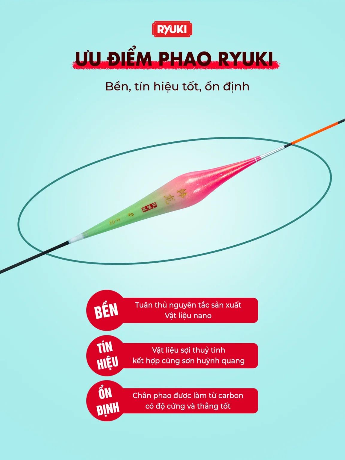 Phao Nano Câu Trắm,chép cao cấp RYUKI H-02 là sản phẩm chất lượng cao dành cho các tay câu chuyên nghiệp và nghiệp dư.