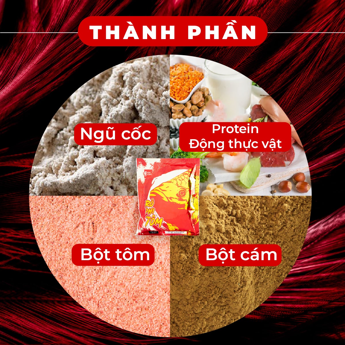 Thành phần chính là bột tôm Nam Cực giúp dụ cá nhanh, đặc biệt phù hợp dùng khi thời tiết chuyển lạnh.