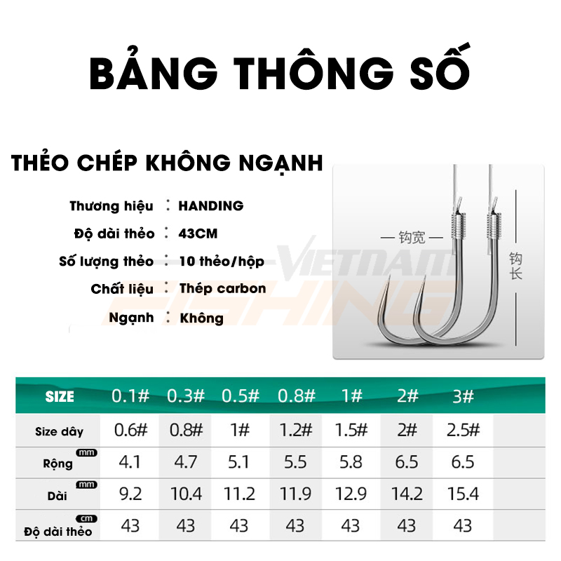 THẺO CÂU HANDING KHÔNG NGẠNH - Lưỡi chuyên cá chép buộc sẵn của Handing