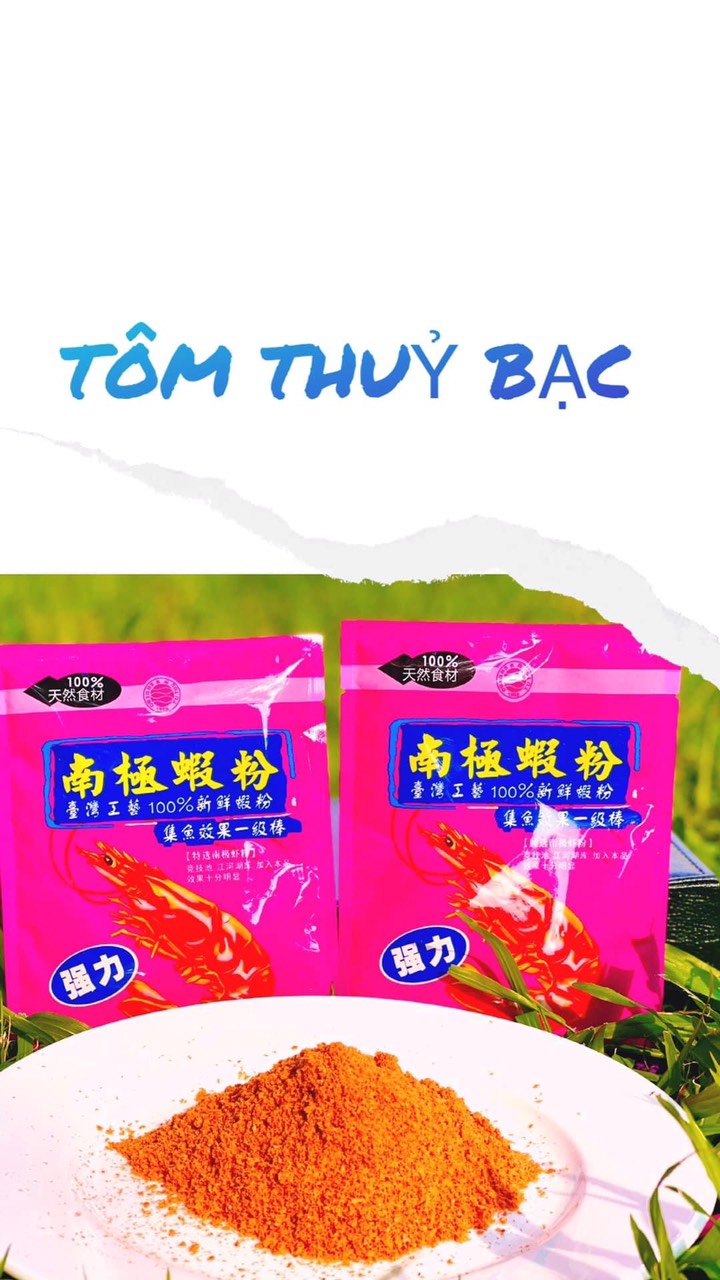 Bột tôm thủy bạc được làm từ tôm nguyên chất tươi chọn lọc được sấy khô. Với công nghệ đài loan bột tôm nam cực tự nhiên hiệu quả nổi trội khi dùng câu cá hồ thi đấu, hồ dịch vụ, hồ tự nhiên