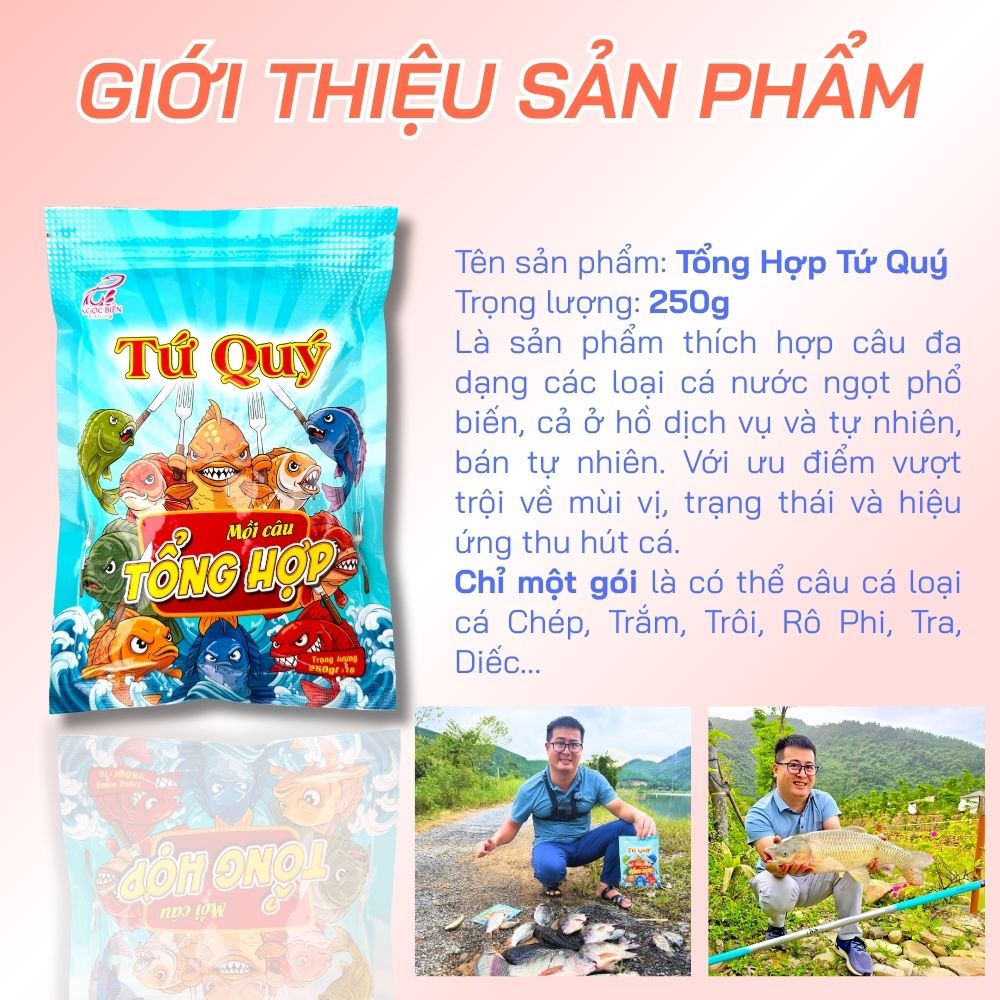 Sản phẩm này thích hợp để câu đa dạng các loại cá Chép, Rô Phi, Trôi, Trắm, Dưng, Diếc.... Chỉ với 1 gói, bạn có thể câu được nhiều loại cá phổ biến ở hồ dịch vụ và tự nhiên.
